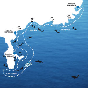 Cruise along the coast from Monaco to Nice. Discover coves with crystal-clear waters, perfect for snorkelling to explore the Mediterranean’s marine life. Pass by pinecovered capes, hiding luxurious villas, some owned by celebrities. On our cruise deep into Villefranche Bay, take the time to explore this charming fishing village, strolling along the quays and narrow streets. We’ll also sail farther out to let you admire the magnificent panorama of the Riviera from the sea and possibly encounter dolphins playing in the wake of our boat.